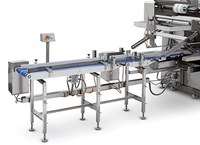 Enveloppeuse Flow Pack horizontale (HFFS) qui réalise 3 soudures totalement hermétiques et obtient un sachet "coussin" pour le conditionnement, sous Atmosphère Modifiée (MAP), d'aliments frais. Niveau de prestations le plus élevé.