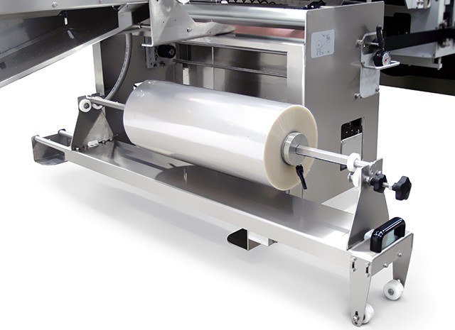 - Porte-bobines d' accès facile pour charger aisément les bobines lourdes. Il est équipé d' un système motorisé pour le déroulement du film qui optimise le fonctionnement de la machine.