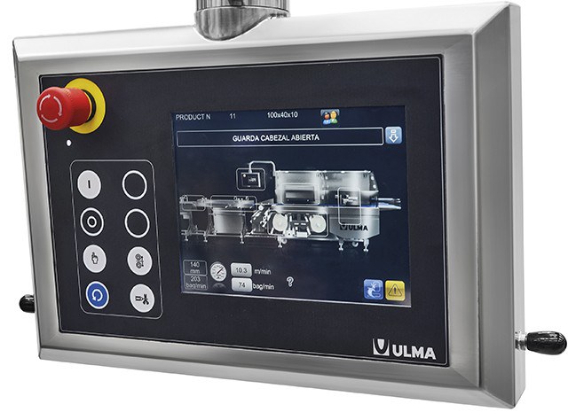 La machine est contrôlée par PC industriel avec un HMI tactile de 10”, icônes graphiques et connectivité avec l' environnement de production facilitant l' utilisation de l’opérateur.