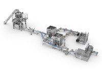 Ligne de conditionnement pour sucreries et produits de confiseries avec emballage et mise en étui automatique.