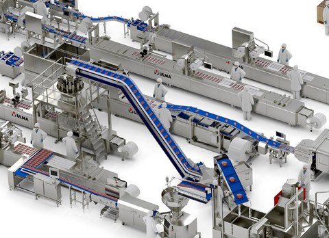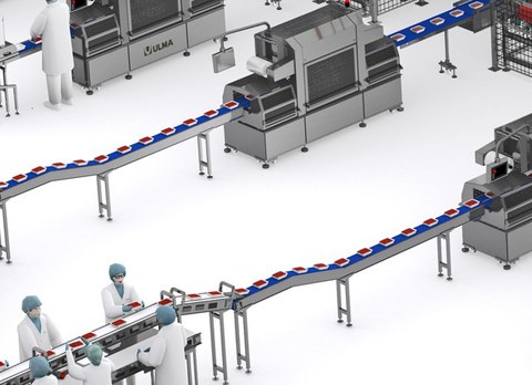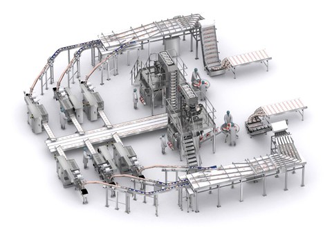 Solutions complètes entièrement automatisées pour la viande, allant de la manutention et du chargement des produits, à l'emballage final et à la palettisation.