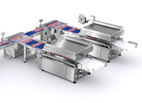 La haute productivité du système FLOW-VAC® permet aussi d' automatiser le chargement de deux cloches à vide au maximum en utilisant deux systèmes de transfert à 90°.
