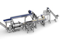 La ligne est équipée d' un détecteur de métaux avec éjection et d' une étiqueteuse d' emballages.