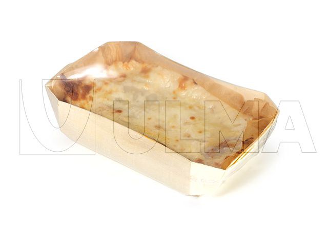 Lasagnes en barquette en bois emballées en flow pack (hffs) avec film barrière rétractable. 2109_1.jpg FM 300 Enveloppeuse Flow Pack horizontale (HFFS) qui réalise 3 soudures totalement hermétiques et obtient un sachet "coussin" pour le conditionnement, sous Atmosphère Modifiée (MAP), d'aliments frais. Niveau de prestations élevé.