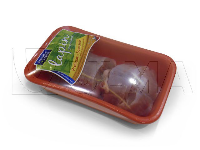 Conditionnement Flow Pack de découpe de lapin en barquette sous Atmosphère Modifiée (MAP)et film rétractable barrière BDF. 1398_1.jpg FM 300 Enveloppeuse Flow Pack horizontale (HFFS) qui réalise 3 soudures totalement hermétiques et obtient un sachet "coussin" pour le conditionnement, sous Atmosphère Modifiée (MAP), d'aliments frais. Niveau de prestations élevé.