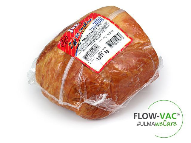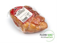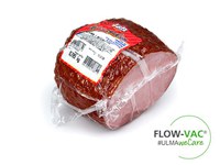 Enveloppeuse Flow Pack horizontale (HFFS) modèle FLOW-VAC® qui, à partir d'une seule bobine de film barrière et rétractable, crée un emballage sous vide. Conçue pour les viandes fumées et élaborées ainsi que pour le fromage, c'est aussi une machine idéale pour la viande fraîche de porc et d'agneau.