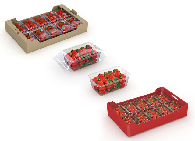 De flowpacker verzorgt de primaire verpakking van elke tray aardbeien. Hiervoor wordt een automatische feeder gebruikt voor het positioneren en het verkrijgen van de exacte scheiding tussen trays zodat de doorstroming van het proces optimaal is.