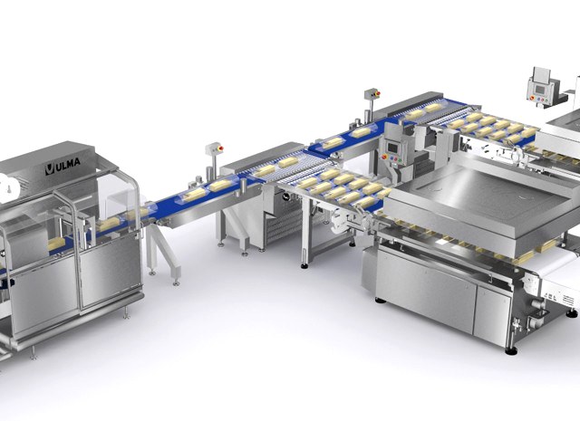 Het dubbele automatische transfersysteem gepatenteerd door ULMA Packaging maakt het mogelijk om uit de verpakkingsmachine zakken te halen die afwisselend aan de voorkant en aan de achterkant open zijn, zodat het mogelijk is om het laden van de pakketten naar een vacuümkamerband met dubbele sealbalk te automatiseren, gebruikmakend van een 90º transfersysteem.
