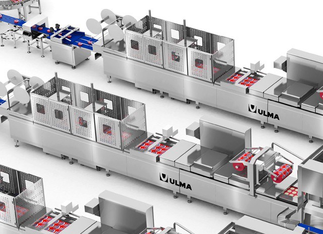 Volledig geautomatiseerde totaaloplossing voor verse kaas bestaande uit drie verpakkingslijnen met thermoformers.