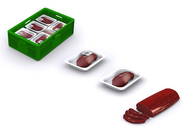 Complete verpakkingslijn voor volautomatische vleesfilets in trays.