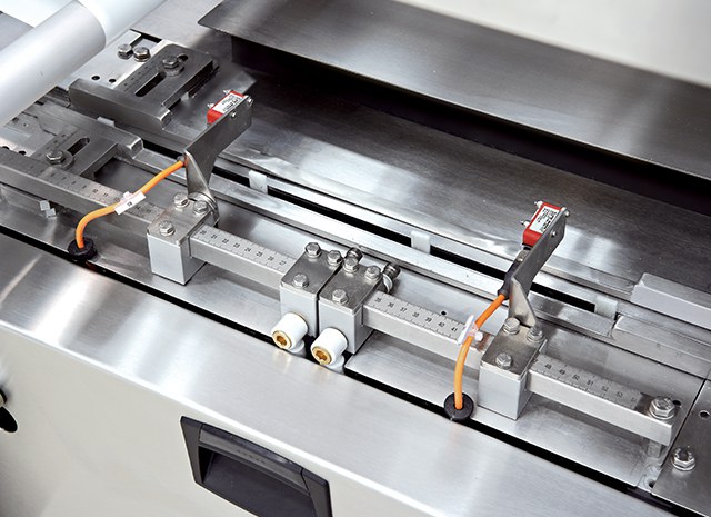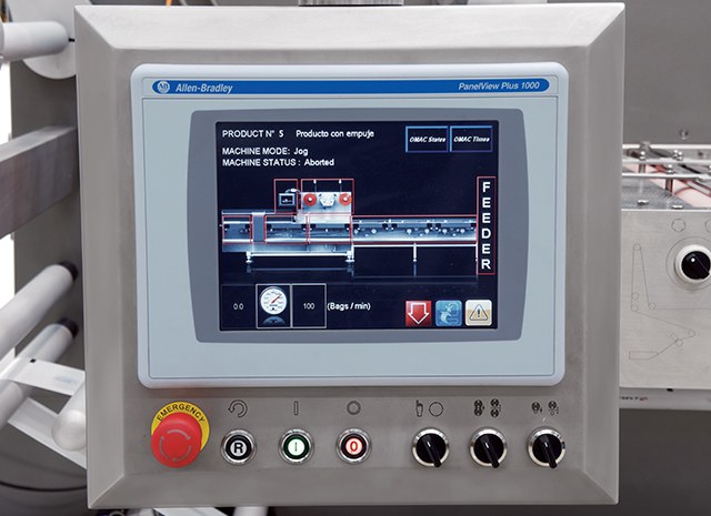 - Elektronische machine uitgerust met vier onafhankelijke servomotoren (roterende sealbalken, sealrollers, aanvoersysteem en gemotoriseerde rolhouder) gesynchroniseerd met een elektronische multi-assen besturingspaneel)
