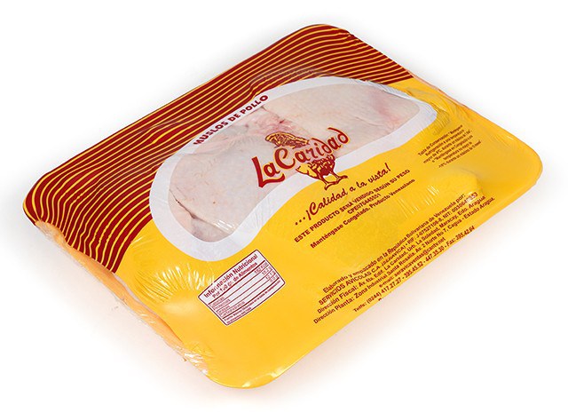 Horizontale Flowpacker (HFFS) die een volledig hermetisch en lekvrij verpakking met drie seals maakt voor het verpakken van vlees en gevogelte in trays. Specifiek ontworpen om te werken met rekbare krimpfolies.
