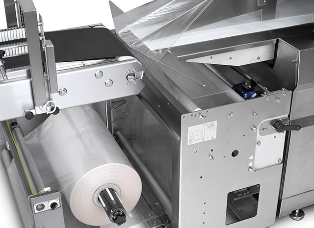Deze verpakkingsmachine heeft de folierol onderop de machine. Deze folierol voert CRYOVAC®barrière folie onder het product. Deze folie wordt afgewikkeld terwijl het product naar het langssealsysteem gaat. Op deze manier wordt vermeden dat de dwarsseal vuil wordt omdat het product niet in contact komt met het sealgebied.
