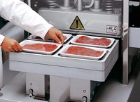Het proces start met het plaatsen van de trays met product in het werktuig van de machine.