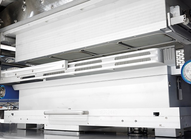 - Aangedreven drummotor voor traytoevoer- en positioneringsband.