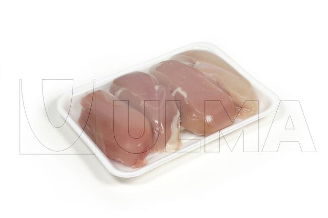 Kippenborst op foamtray verpakt met SSF folie in traysealer Lage kosten door het gebruik SSF(rek-krimpfolie) van 14 microns. Het is niet barriere folie, en het eindproduct is dan luchtdicht. 1512_1.jpg TSA 680 Volautomatische traysealer voor diverse voorgevormde trays. Geschikt voor de productie van verpakkingen met beschermende atmosfeer (MAP en EMAP) en voor vacuüm skinverpakkingen. Een robuuste traysealer geschikt voor lijnintegratie.