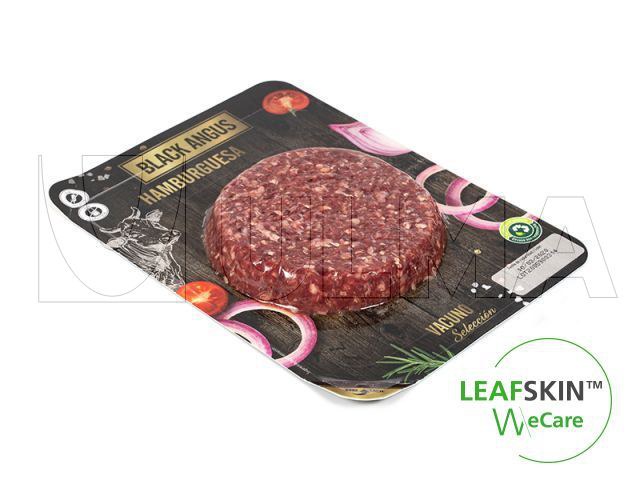 Hamburger verpakt in Leafskin(TM) met traysealer